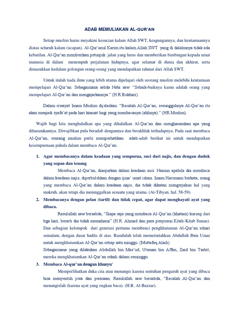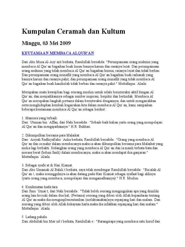 Doc Kultum Tentang Keutamaan Membaca Al Qur An Nurul Khotimah Academia Edu